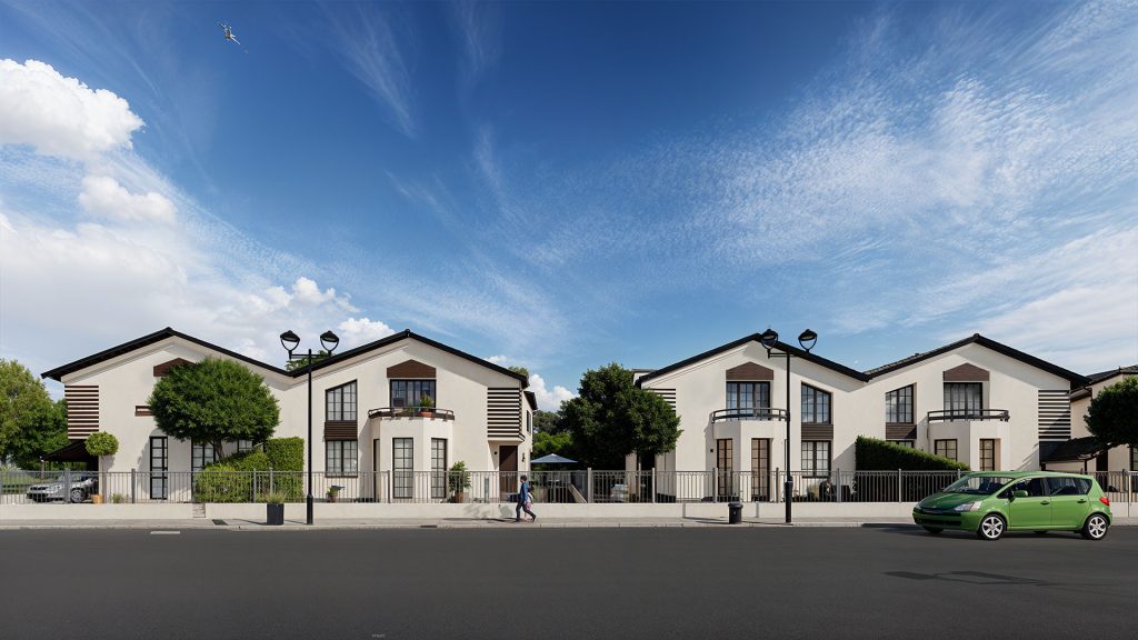 The Goght Eco Resort features a distinct area of 22 townhouses, designed for modern, communal living within a sustainable framework. Located in a separate, isolated section of the resort, these homes provide a unique blend of privacy and community.